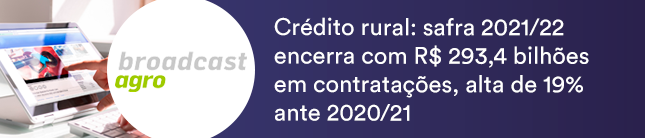Os produtores rurais contrataram R$ 293,41 bilhões em operações de crédito rural na safra 2021/22, encerrada no mês passado, superando em R$ 42,19 bilhões o que foi inicialmente oferecido em junho de 2021 (R$ 251,2 bilhões). O desempenho corresponde a um aumento de 19% em relação à safra anterior (R$ 245,77 bilhões), relata o Broadcast Agro. O desempenho favorável ocorreu apesar de as operações de crédito rural com recursos equalizáveis terem permanecido suspensas durante quatro meses, exceto para custeio no âmbito do Programa Nacional de Fortalecimento da Agricultura Familiar (Pronaf).