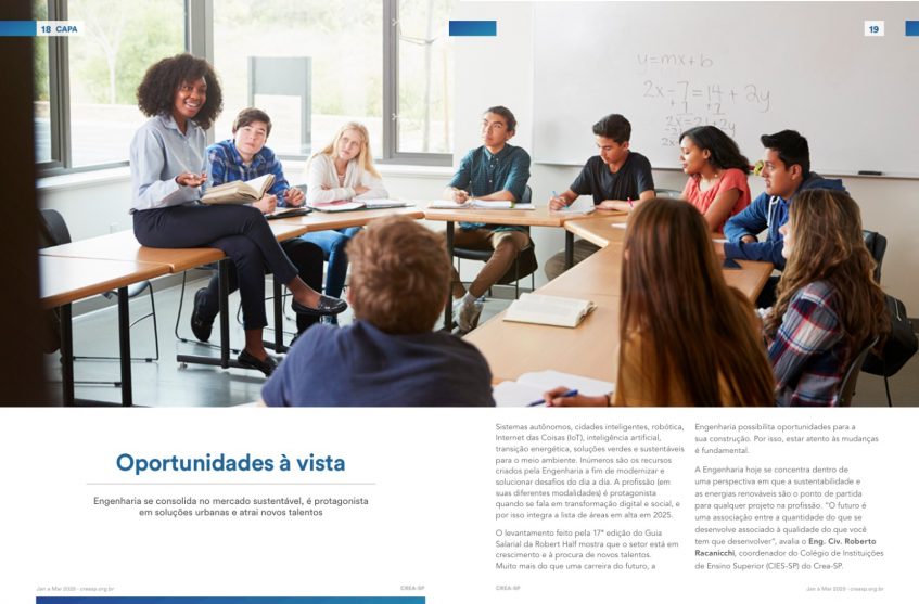 O futuro já está acontecendo e a área tecnológica desempenha um papel essencial na transformação da sociedade para esta nova realidade. A 15ª edição da Revista CREA São Paulo exemplifica esse processo com a matéria ‘Oportunidades à Vista’, que destaca como as profissões de Engenharia, Agronomia, Geociências, Tecnologia e Design de Interiores contribuem para avanços em cidades inteligentes, robótica, Internet das Coisas (IoT) e inteligência artificial que estão impulsionando o mercado e atraindo novos talentos.