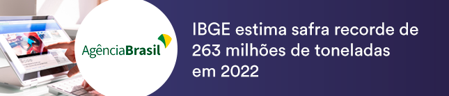 A produção de cereais, leguminosas e oleaginosas deve fechar 2022 com um volume recorde de 263 milhões de toneladas. Caso a estimativa se confirme, a safra será 3,8% superior à registrada em 2021, de 253,2 milhões de toneladas. O dado é do Levantamento Sistemático da Produção Agrícola (LSPA) de maio, divulgado pelo Instituto Brasileiro de Geografia e Estatística (IBGE), informa a Agência Brasil.