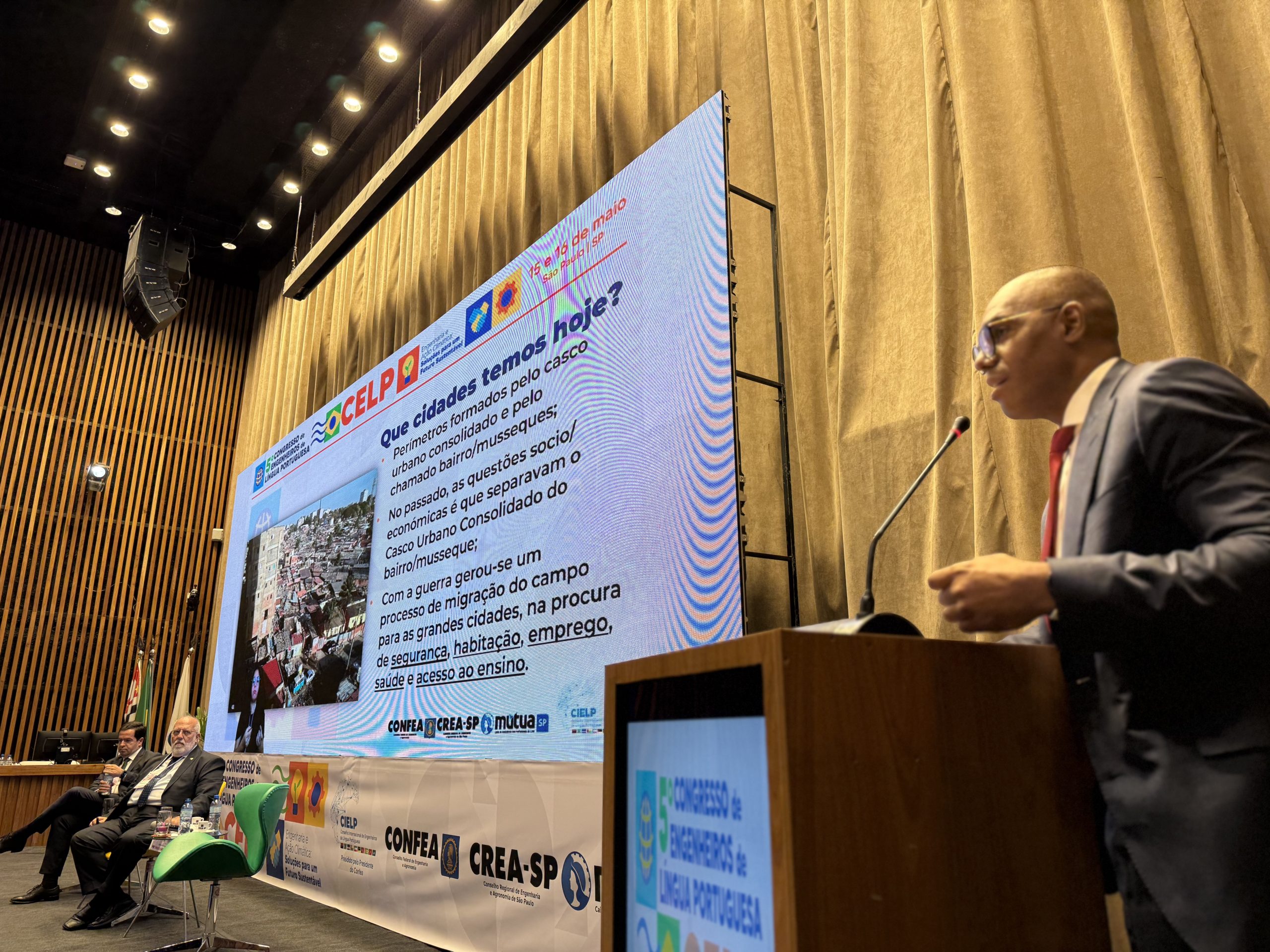 Na sequência, o painel ‘Futuro das cidades: Habitação e mobilidade’ abordou a crise habitacional e os modelos de mobilidade urbana sustentáveis. O Eng. Osmar Barros, conselheiro federal suplente de Instituições de Ensino Superior de Engenharia, por São Paulo, conduziu os debates com o Eng. Bento Aires, presidente do Conselho Diretivo da Região Norte da OEP, e o Eng. Rui Neves, da OEA. Aires expôs o cenário lusitano. “A sustentabilidade tem um grande pilar que é o social, onde está a habitação. Vivemos uma crise de acesso e de permanência na habitação, e é com a Engenharia que garantimos o planejar, guiar e construir”, pontuou. Ao apresentar a experiência angolana, Neves compartilhou iniciativas de erradicação de bairros degradados no país.