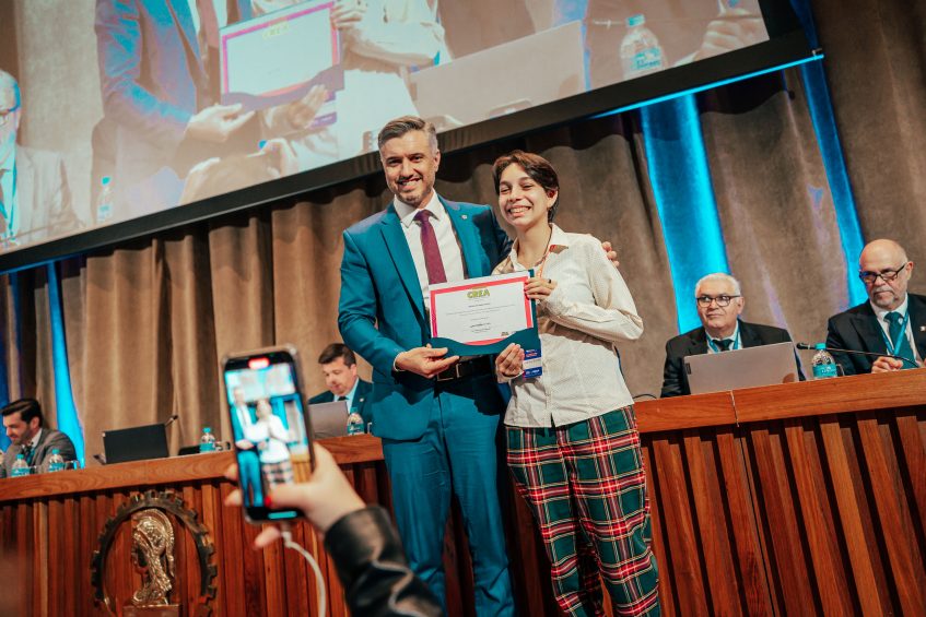 “O que nos fez preencher o formulário de inscrição para estar aqui foi propósito. É isso que nos move e é isso que nos faz ter a força transformadora e o desejo de mudar. Chegamos com muitas dúvidas que foram esclarecidas para que, a partir daqui, possamos ocupar lugares de liderança, crescer e construir o futuro”, declarou a aluna de Engenharia de Biotecnologia da Universidade Estadual Paulista (Unesp), Gabriela de Angelo Gomes, que compôs a mesa da Sessão Plenária representando os colegas.