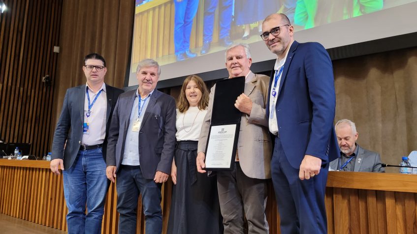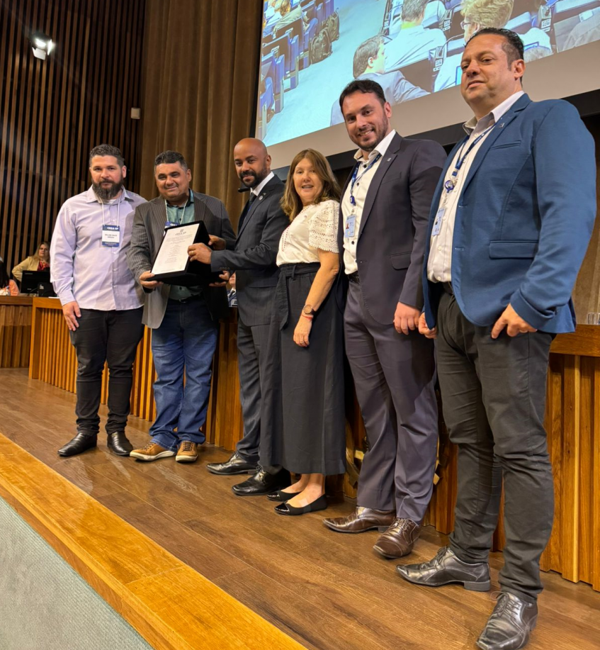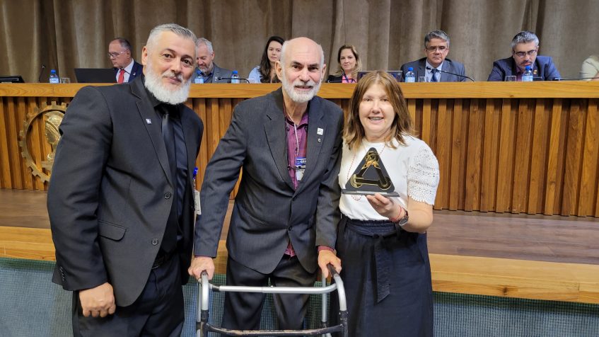 A Sessão prosseguiu com homenagens às entidades de classe que recentemente completaram aniversários. O presidente da Associação de Arquitetos, Engenheiros e Agrônomos de Artur Nogueira (AEAN), Eng. José Sebastião Spada, subiu ao palco acompanhado pelo conselheiro Eng. Edmo José Stahl Cardoso, que representa a mesma instituição no plenário; pelo chefe da Unidade do Crea-SP no município, Eng. André Buffon; e pelo gerente regional do Conselho, Eng. Rodrigo Bucci Zorzetto.