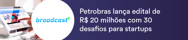 A Petrobras lançou nesta terça-feira (17) o quarto edital do Módulo Startups, do Programa Petrobras Conexões para Inovação, no valor de R$ 20 milhões, relata o Broadcast. O edital traz 30 desafios distribuídos em sete verticais tecnológicas: robótica, redução de carbono, tecnologias digitais, armazenamento e geração de energia, corrosão, modelagem geológica e tecnologias de inspeção. O investimento nos projetos depende do nível de complexidade dos desafios. No final da seleção, as empresas vencedoras podem receber valores até R$ 500 mil, para os desafios “soft tech”, ou até R$ 1,5 milhão para os “deep tech”.