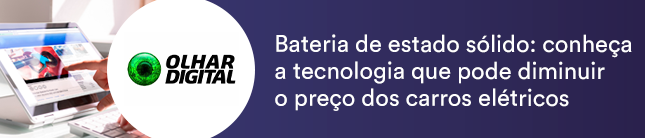 A bateria de estado sólido pode contribuir para adoção de carros elétricos, ja que oferece mais alcance e vida útil — 15 anos ou mais, diz a startup americana Adden Energy, destaca o Olhar Digital. Outra vantagem é que o tempo em ponto de recarga diminui (algumas baterias de estado sólido podem atingir 80% de carga em minutos). As baterias de estado sólido são mais seguras, carregam menos metais pesados, custam menos para produzir e acumulam mais energia ocupando o mesmo espaço das baterias de íon-lítio. A expectativa é que a tecnologia comece a chegar aos automóveis em 2024.