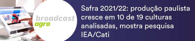 A produção agrícola do Estado de São Paulo na safra 2021/22 deve registrar aumento em 10 das 19 culturas analisadas, aponta o terceiro levantamento do Instituto de Economia Agrícola (IEA) e da Coordenadoria de Assistência Técnica Integral (Cati), da Secretaria de Agricultura e Abastecimento, realizado entre 1º de fevereiro a 9 de março, reporta o Broadcast Agro. A produção da primeira safra de milho deve crescer 4,2% ante a safra 2020/21.