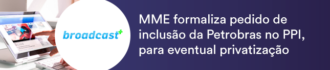 O Ministério de Minas e Energia formalizou na segunda-feira (30) o pedido, ao Ministério da Economia, de inclusão da Petrobras na carteira do Programa de Parcerias e Investimentos (PPI), a etapa inicial para o processo de uma eventual privatização da companhia, relata o Broadcast. “A qualificação da Petrobras no PPI tem como objetivo dar início aos estudos para a proposição de ações necessárias à desestatização da empresa, os quais serão produzidos por um comitê interministerial a ser instituído entre o Ministério de Minas e Energia e o Ministério da Economia”, informou o MME, em nota.