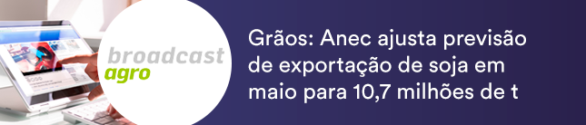 A Associação Nacional dos Exportadores de Cereais (Anec) ajustou a sua estimativa para as exportações de soja no mês de maio, informa o Broadcast. A expectativa agora é de embarques de 10,731 milhões de toneladas, em comparação com 10,2 milhões a 11,278 milhões de toneladas previstos na última semana. As projeções tomam como base os dados da programação de navios nos portos brasileiros.