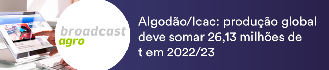 Segundo o relatório do Conselho Consultivo Internacional do Algodão (Icac, na sigla em inglês), a produção mundial de algodão deve somar 26,13 milhões de toneladas na temporada 2022/23. Esta é a primeira projeção do Icac para a próxima temporada, que começa em 1º de agosto. O volume representa aumento de 0,93% ante a estimativa para a temporada 2021/22, de 25,89 milhões de toneladas, e deve ser impulsionado por um aumento esperado de 25% na produção do Paquistão, reporta o Broadcast.