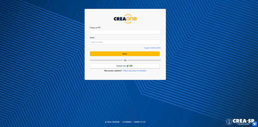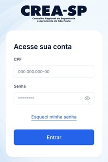 1. Acesse a área de login utilizando o número do seu Creasp, CPF ou por meio do Gov.br: