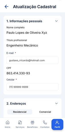 3. Agora basta atualizar dados como endereço, telefone, e‑mail, preferências de notificação e senha de acesso.
