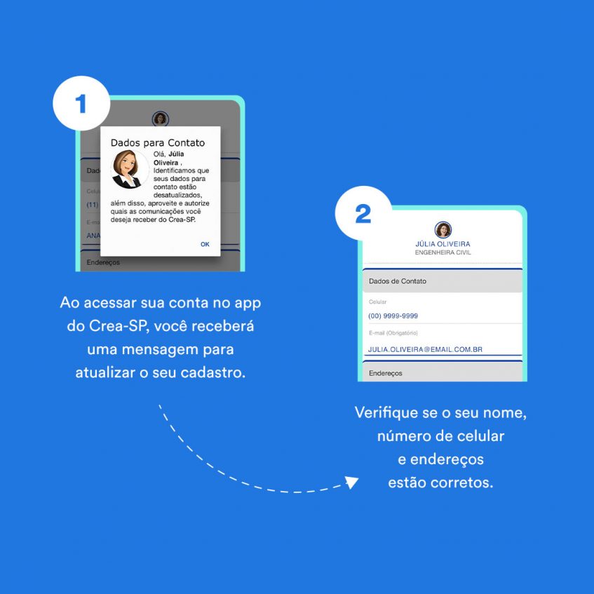 Com o cadastro atualizado no Crea-SP, os profissionais recebem comunicações sobre todas as novidades do Conselho. São informações sobre serviços e mudanças nas plataformas de atendimento, benefícios disponíveis no Clube de Vantagens, datas importantes e mais.