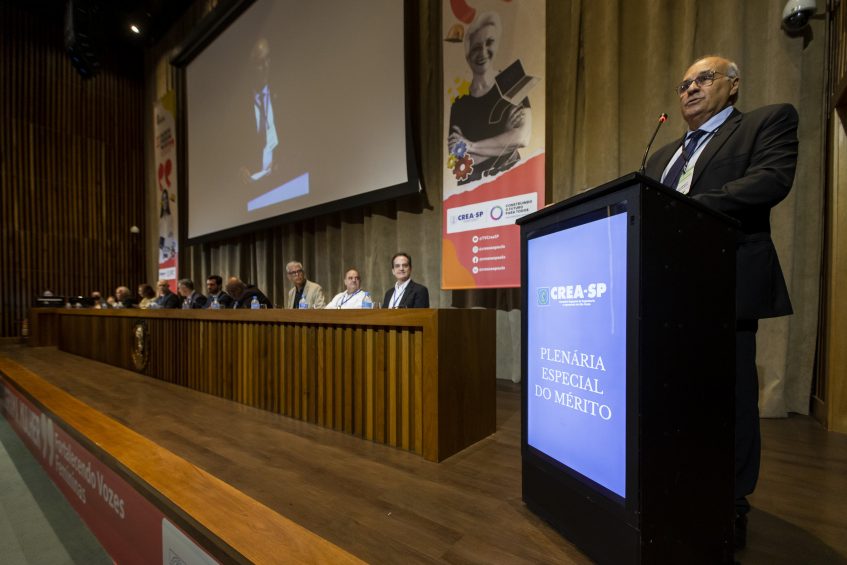 Familiares e amigos também subiram ao palco para receber as homenagens da inscrição no Livro do Mérito do Crea-SP, honraria que eterniza profissionais já falecidos pelos seus feitos relevantes à sociedade e ao Sistema Confea/Crea. Representando os indicados, o amigo Edmond José Cardoso foi quem falou pelas famílias. “Estou honrado por ser escolhido a falar em nome das famílias e por ter indicado profissionais para receber esta homenagem. Conheci seus familiares e amigos e acredito que este seja um orgulho para eles, que sabem do valor de seus entes queridos. Com esta solenidade, temos a oportunidade de ver como são distintos e reconhecidos por seus pares”, ressaltou.