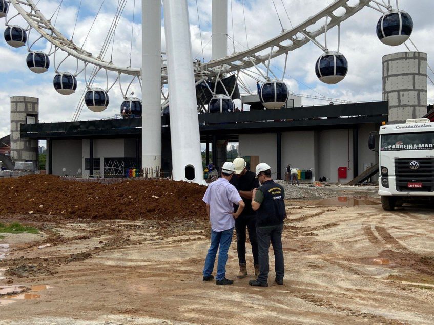 Durante a ação, os agentes do Conselho verificaram documentos e informações sobre as empresas responsáveis pela montagem, estrutura e sondagem da roda-gigante com o objetivo de atestar a regularidade das contratadas para a execução dos trabalhos.