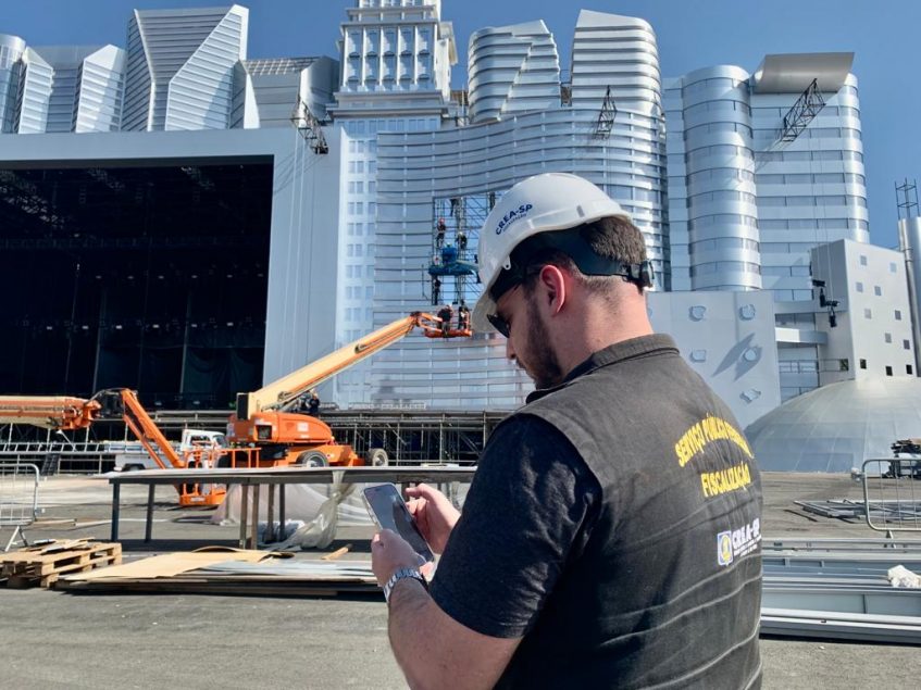 Além dos agentes fiscais, acompanharam a ação: a superintendente de Fiscalização do Conselho, Eng. Maria Edith dos Santos; o coordenador da Câmara Especializada de Engenharia Civil da autarquia, Eng. Roberto Racanicchi; o inspetor do Crea-SP e engenheiro da São Paulo Turismo (SPTuris) da Prefeitura Municipal de São Paulo, Eng. Jeová Gomes da Silva Júnior; e o responsável técnico pela estrutura do The Town, Eng. Jackson Pessanha.