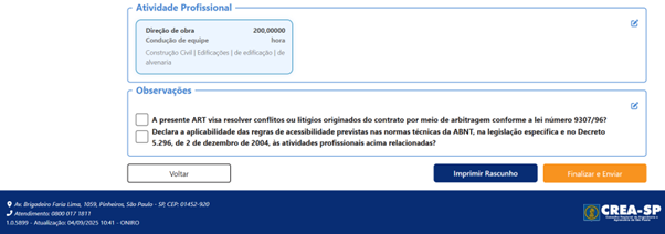 Tela de edição de rascunho de ART