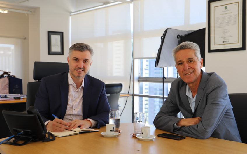 Para debater ideias e realizar esse intercâmbio de conhecimentos, o presidente do Crea-SP, Eng. Telecom. Vinicius Marchese recebeu o presidente do Regional de Minas Gerais, Eng. Civ. Lucio Borges no início do mês (9/03) em seu gabinete na Sede Faria Lima.