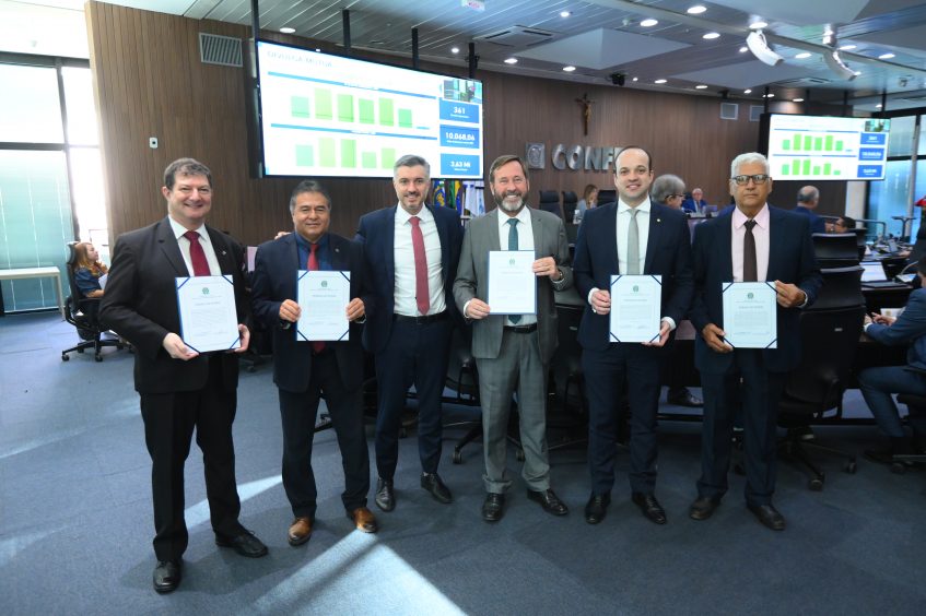 Na última quarta-feira (24/07), aconteceu a posse da nova diretoria da Mútua Nacional – Caixa de Assistência dos Profissionais, no Confea. A partir do dia 25 de agosto, os engenheiros Carlos Antônio Xavier, Edson Kuwahara, Emanuel Maia Mota, Evânio Ramos Nicoleit e Joel Krüger, eleito diretor-presidente, ocupam a diretoria da entidade, permanecendo até o dia 24 de agosto de 2027. A eleição foi realizada em maio deste ano pelo Colégio de Presidentes e pelo plenário.