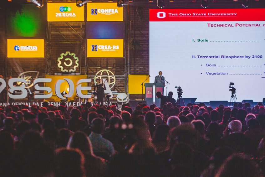 Rattan Lal destacou a posição da agricultura brasileira nesse cenário. “O futuro da agricultura do Brasil e do mundo, ao invés de ser baseado em variedade e quantidade de matéria prima, deve ser baseado em solo, na sua saúde e resiliência. A ecoeficiência é muito importante. Trazer o conhecimento e a ciência para tirar mais com menos. A agricultura tem que ser uma solução na qual o solo se torna um armazenamento, algo que irá absorver o carbono. Os engenheiros devem pesquisar mais o uso de nitrogênio como fertilizante para neutralizar o carbono, pois a gestão no solo muda o carbono orgânico e inorgânico”, observou.