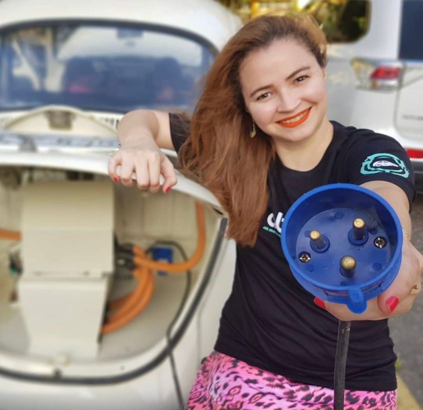 Diretora da Associação Brasileira dos Proprietários de Veículos Elétricos Inovadores (Abravei) e fundadora da startup MeuVeb, a profissional é especialista em energia solar fotovoltaica e pioneira na instalação de carregador de carro elétrico no Espírito Santo. O projeto do Fusca lhe rendeu o Prêmio Ecologia em 2018 e um destaque na mídia nacional.