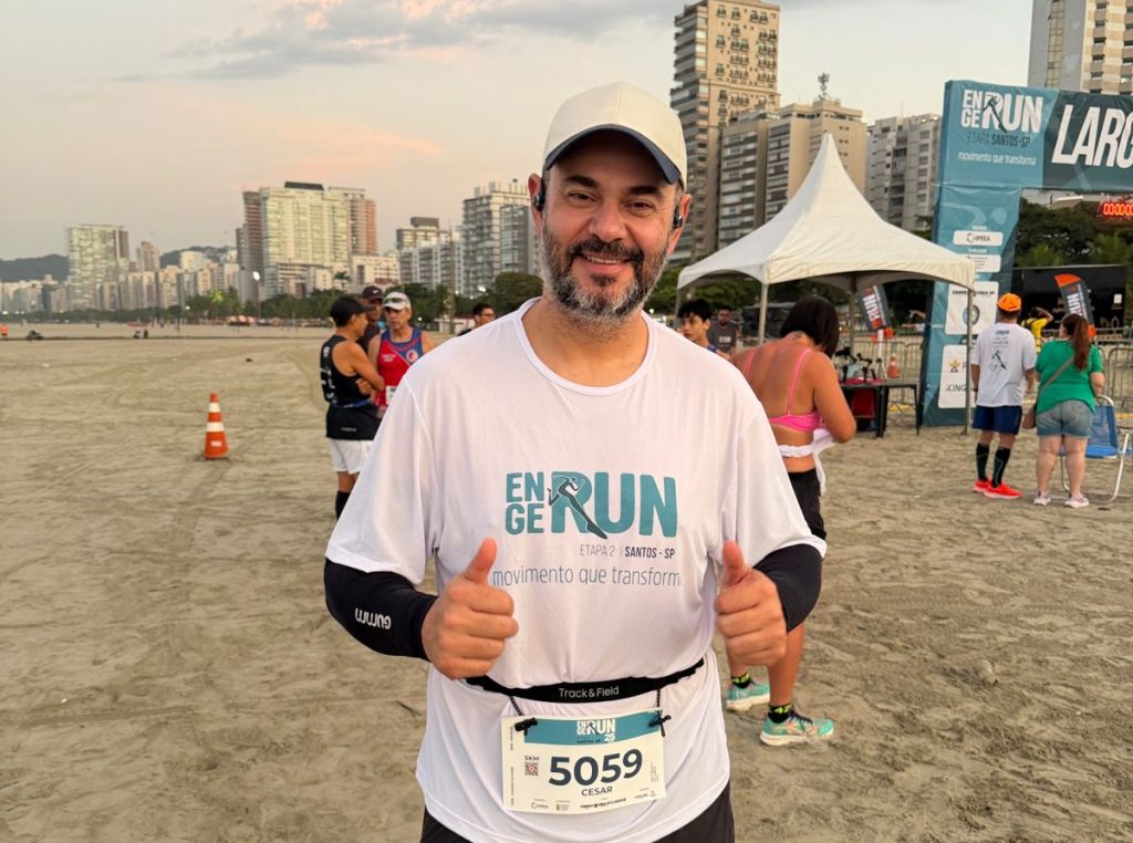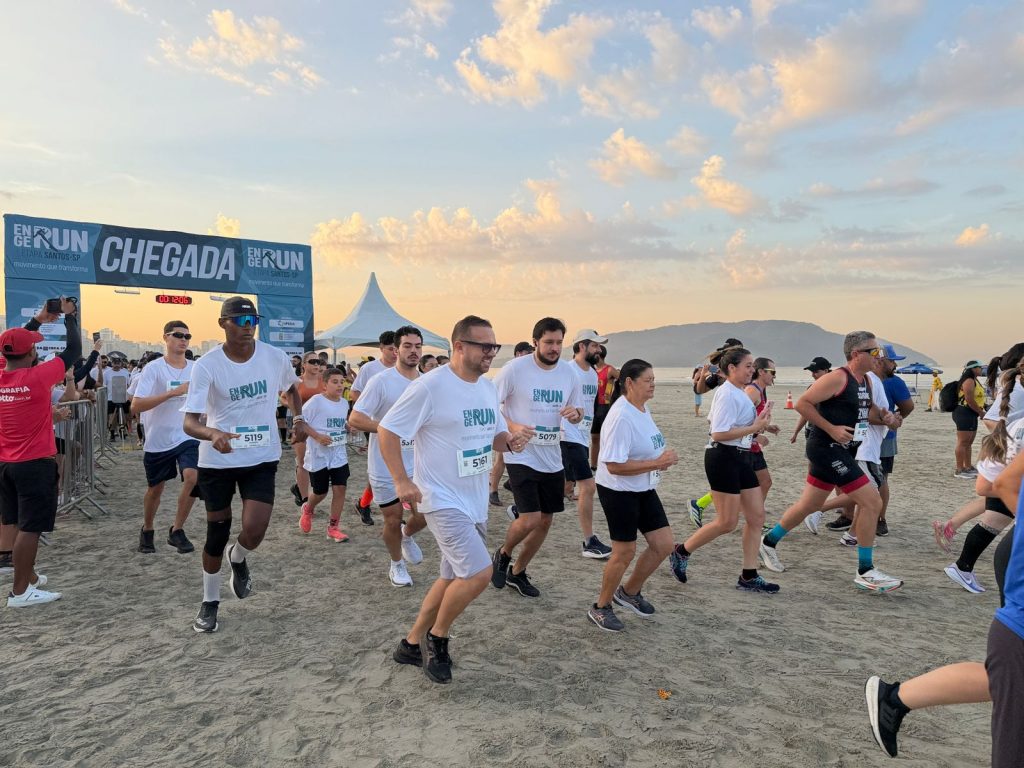 A areia da praia e a orla de Santos foram palco de um importante encontro entre esporte, bem-estar e saúde no último sábado (25/04), durante mais uma prova da EngeRun 2026. A etapa de Santos reuniu cerca de 700 participantes, entre corredores profissionais, amadores e famílias.