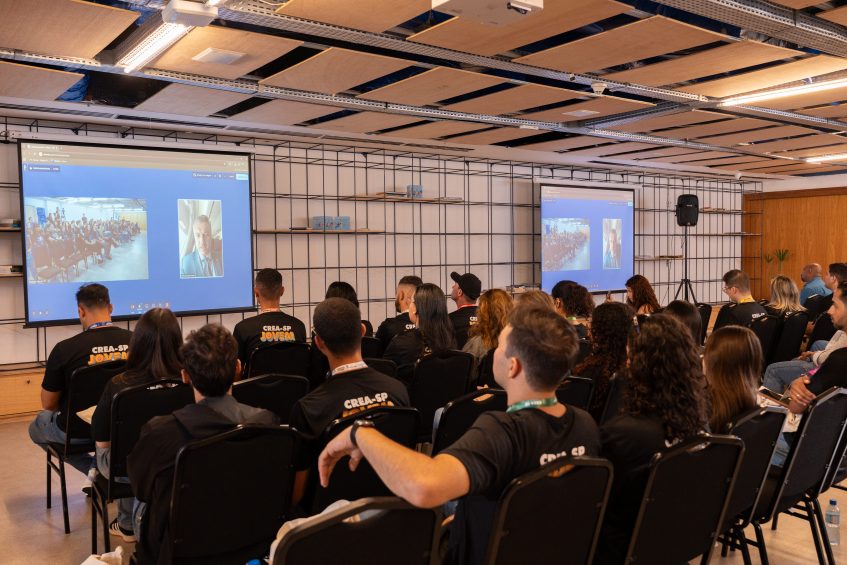 Já o Eng. Felipe Dias Soares, coordenador do Crea-SP Jovem, explicou o funcionamento do Sistema Confea/Crea aos estudantes. “Temos a missão de proteger a sociedade e valorizar o exercício profissional da área tecnológica. Além disso, assegurar a ética, transparência, agilidade e eficácia da profissão”, declarou.