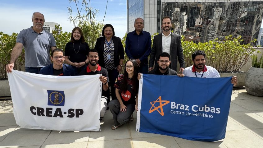 No encontro, do qual participaram ainda o diretor de Valorização Profissional do Crea-SP, engenheiro geólogo Fernando Augusto Saraiva, a superintendente de Fiscalização do Conselho, Eng. Maria Edith dos Santos, o chefe da Unidade de Gestão de Inspetoria (UGI) de Guarulhos e da Zona Leste da capital, tecnólogo Rubens Roque Moraes, o gerente regional Eng. Guilherme Del Nero Fiorellini e o conselheiro que representa o Centro Universitário Braz Cubas, Eng. Glauton Machado Barbosa, o time apresentou suas conquistas nacionais e internacionais na área de desenvolvimento de robôs de competição e reiterou o compromisso com a educação, a tecnologia e a valorização da Engenharia. “Esse projeto fortalece a nossa formação acadêmica, além de estreitar laços de cooperação”, ressaltou Vinícius Pimentel, capitão do grupo e graduando de Engenharia Elétrica.