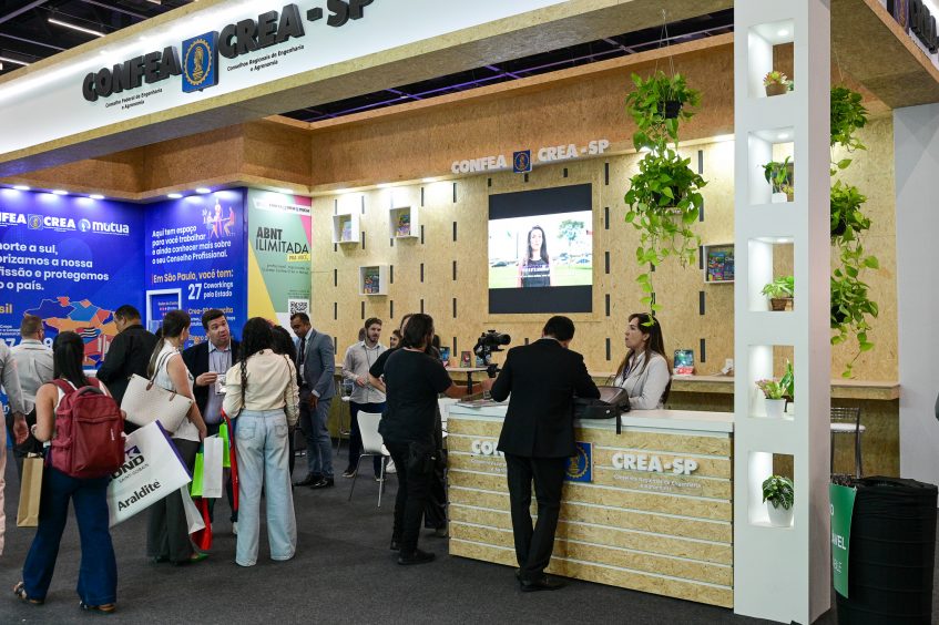 A movimentação de pessoas é intensa e constante, algumas passam e olham curiosas. Outras param, perguntam, ficam um tempo para tomar um café, assistem aos vídeos com atenção e seguem seus caminhos para explorar mais do extenso espaço da Feira Internacional de Construção Civil (FEICON), na São Paulo Expo, na capital paulista. No estande do Sistema Confea/Crea e Mútua, duas amigas chegam juntas e começam a contar como chegaram ali: graças à cobertura do evento nas redes sociais do Crea-SP, mais especificamente no Instagram.