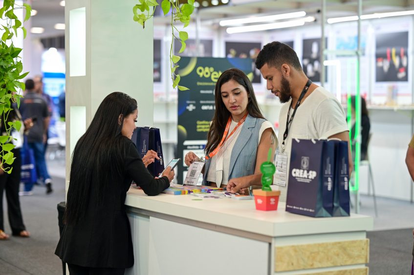 As engenheiras civis Cintia Barros Farias e Diovana Souza Rodrigues acompanham as publicações do Conselho e aproveitam todas as oportunidades para ampliarem suas conexões de trabalho. A participação na Feira – considerada a maior do setor na América Latina – é uma dessas chances. “Sou recém-formada e sempre que posso participo das iniciativas do Crea-SP, que ajudam muito nesse início da profissão quando estamos entrando no mercado de trabalho. Fiquei sabendo pelo Instagram, chamei a Diovana e viemos imediatamente”, disse Cintia Farias.