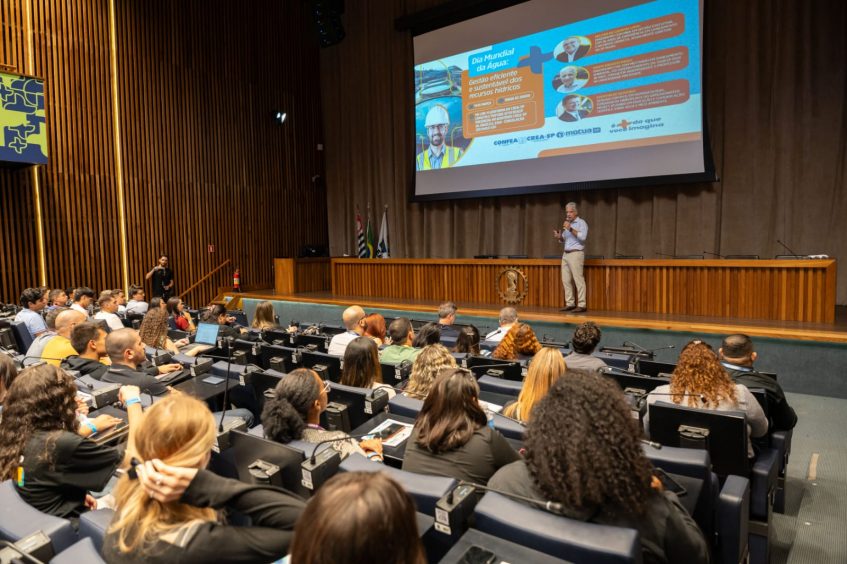 “Sem Engenharia, não há gestão eficiente da água e, sem gestão, não há desenvolvimento sustentável”. A fala do Geol. Everton de Oliveira destacou a importância da área tecnológica no cenário apresentado durante a edição especial do Crea-SP Capacita, que aconteceu na última quarta-feira (19/03), em comemoração ao Dia Mundial da Água, celebrado em 22 de março. O evento reuniu especialistas e profissionais, além dos participantes da 10ª edição Estágio Visita, em um encontro presencial no auditório da Sede Angélica, com transmissão on-line pelo canal do Conselho no YouTube e pela plataforma do programa, para discutir soluções técnicas.