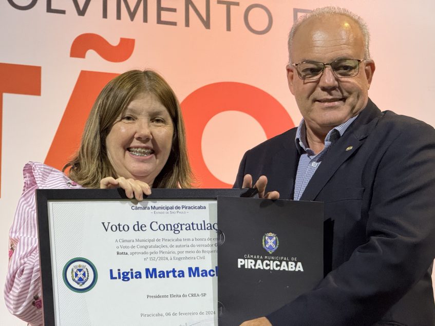 “Entender mais sobre a administração pública nos ajuda também a identificar as oportunidades para criar políticas públicas alinhadas às necessidades da sociedade civil”, comentou a presidente do Crea-SP, Eng. Lígia Mackey, na abertura das discussões. Antes do início do painel, a engenheira recebeu uma homenagem do vereador de Piracicaba, Gilmar Rotta, pelo trabalho desenvolvido à frente da gestão do Conselho.