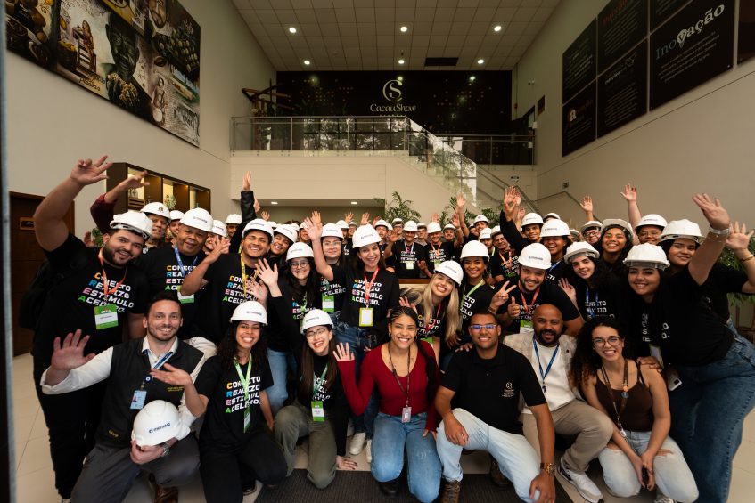 Os estagiários-visitantes participaram ainda de uma visita técnica na fábrica da Cacau Show, em Itapevi (SP). Os participantes conheceram de perto os processos produtivos da empresa, onde diferentes áreas da Engenharia, como de Produção, Mecânica, Elétrica e de Alimentos, atuam de forma integrada para garantir qualidade, inovação e eficiência. A atividade foi guiada pelo Eng. Lucas de Jesus, da equipe de Engenharia de Processos e Melhoria Contínua da Cacau Show, ao lado da estudante de Engenharia de Produção Gabriella Oliveira, que também integra a área e pode contar suas experiências profissionais com os participantes.