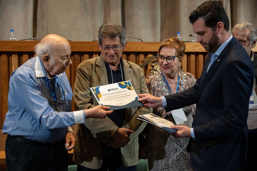 A premiação encerrou com a Láurea de Reconhecimento do Crea-SP, homenageando profissionais do Conselho que completaram 50 anos de registro: