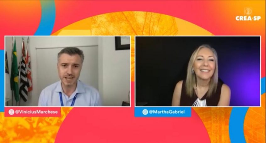 Desde criança, Martha Gabriel já estava envolvida no universo da automação e tecnologia. Esta é a inspiração que a tem acompanhado em toda carreira. Para falar sobre a sua trajetória, a engenheira e futurista participou de live com o presidente do Crea-SP, Eng. Vinicius Marchese, na quarta-feira (22/03), em uma transmissão pela TV Crea-SP, canal do Conselho no YouTube. O bate-papo deu continuidade à programação Mulheres Fortes Lideram o Próprio Futuro.