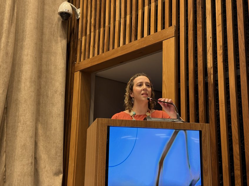 Outra ferramenta na conexão entre esses diferentes públicos são as entidades de classe e, nesta sessão plenária, duas delas foram homenageadas: a Associação dos Engenheiros, Agrônomos e Tecnólogos de Taboão da Serra (AEATS) e Associação de Engenheiro e Tecnólogos de Jandira (AETJAN). “Agradeço a homenagem. É na associação que conseguimos levar todo o conhecimento para os profissionais, estudantes e para a sociedade. Que a nossa parceria se prolongue por muitos anos”, Eng. Agr. Mariana Marotti Corradi.