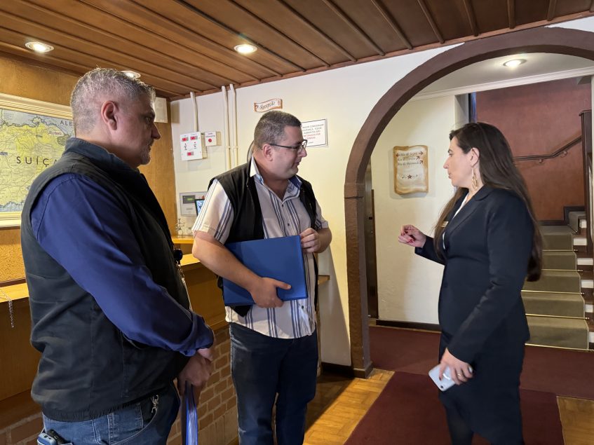 O presidente da Associação dos Engenheiros e Arquitetos de Campos do Jordão, Eng. Rogério Balsante, comemorou o início da operação. “O objetivo é preservar a vida e a segurança da população ao prevenir eventuais acidentes que possam ocorrer devido a falta de fiscalização”, declarou. “É uma honra receber a equipe do Crea-SP para verificar a regularidade, credenciamentos e licenciamentos da rede hoteleira da região”, completou a gerente da pousada AFPESP Appenzel, Fabiane Gonzatti (foto acima, ao lado dos agentes fiscais Rogério Celeste e Leandro Herrada).
