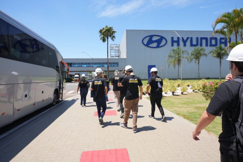 Em Piracicaba, eles foram até a fábrica da Hyundai, que abriu as portas para os estagiários-visitantes conhecerem as instalações onde são feitos os carros da marca e onde funciona também um centro de pesquisa. É lá que quatro universitários selecionados no Desafio Hyundai/Crea-SP, concurso realizado em uma parceria entre o Conselho e a montadora, vão estagiar em janeiro (o resultado acaba de ser divulgado). Quem os recebeu foi o gerente executivo da planta piracicabana, Adm. Marcel Jaworski, que ressaltou as diversas modalidades da área tecnológica presentes no local. “Espero que aproveitem a oportunidade e saiam daqui com aprendizados para usar durante toda a vida”.
