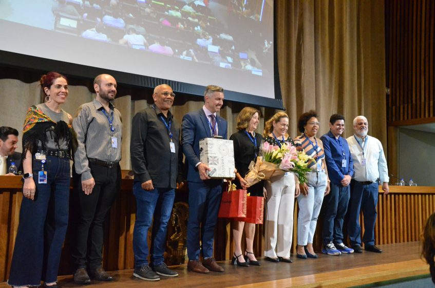 “Vinicius é um cara que, aos 39 anos, reúne uma série de conquistas e feitos que poucas pessoas conseguem realizar ao longo de uma vida”, declarou a jornalista Marina Mattus, assessora da Presidência, que falou em nome dos colaboradores ao presidente e ressaltou o fato de ele ser mais jovem eleito para o Conselho Federal, com recorde de votos. A Diretoria da Associação Paulista de Creanos (APC), que reúne os colaboradores do Conselho, entregou homenagens aos dois presidentes, Vinicius e Lígia (foto abaixo).